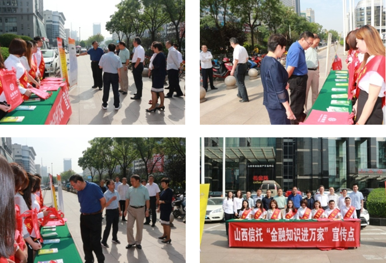为了不断提高银行业金融机构和从业人员保护消费者权益理念,树立银行业依法维护消费者权益和积极履行社会责任的良好印象,深入推进“两学一做”学习教育常态化制度化、维护核心见诸行动主题教育活动,9月1日,公司以开展“进商圈”为主题,正式开启“金融知识进万家”宣传服务月。公司党委副书记乔彦林,纪委书记邢秉华,党委委员、副总经理雷淑俊,总经理助理赵小军,风控总监刘拓旺,投资总监吴岗等公司领导参加了活动。