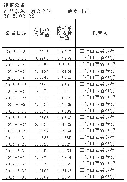 双合金达净值公告